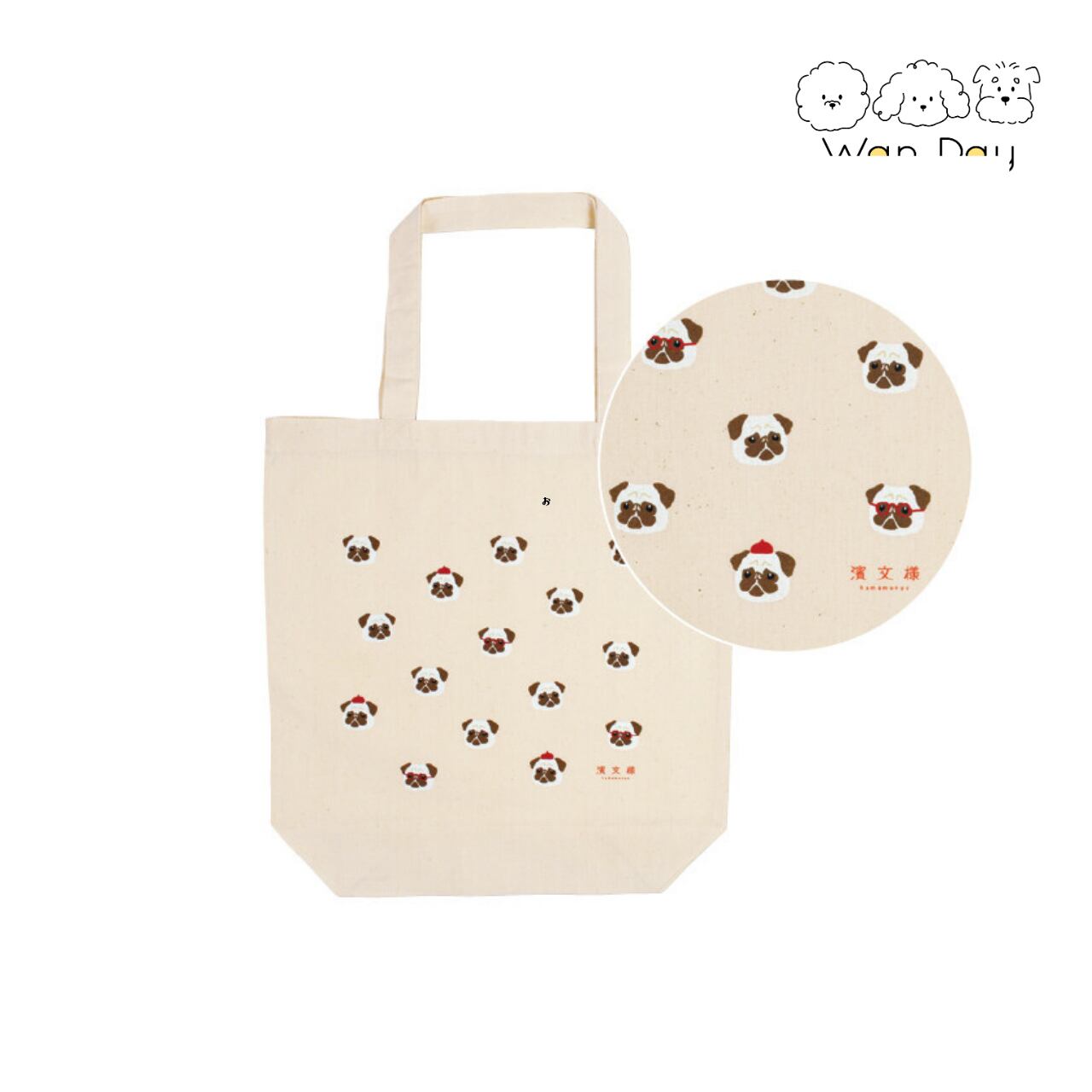 薄手で折り畳める、持ち運びに便利なトートバッグです。 表面には人気のパグ画伯の柄がプリントされています。 【サイズ・容量】 約36.5×37.5cm 底マチ10cm ※持ち手含まず ※平置き計測 ※布の伸縮により、多少の誤差があります。 【素材・成分】 綿100% 生成り 【生産地】 バングラディッシュ