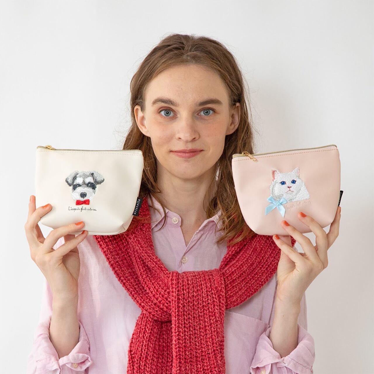 可愛い刺繍のアニマルにワンポイントで立体パーツがついたアトリエ・ポピンシリーズの舟形ポーチです。 しっかりとした収納力もあるためバッグの小物整理におすすめです。 【素材・成分】 合皮 【生産地】 中国