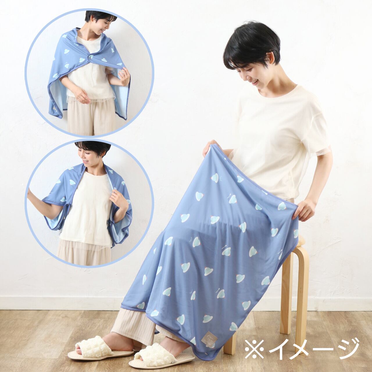 3wayで使用できる冷感ひざ掛けです。