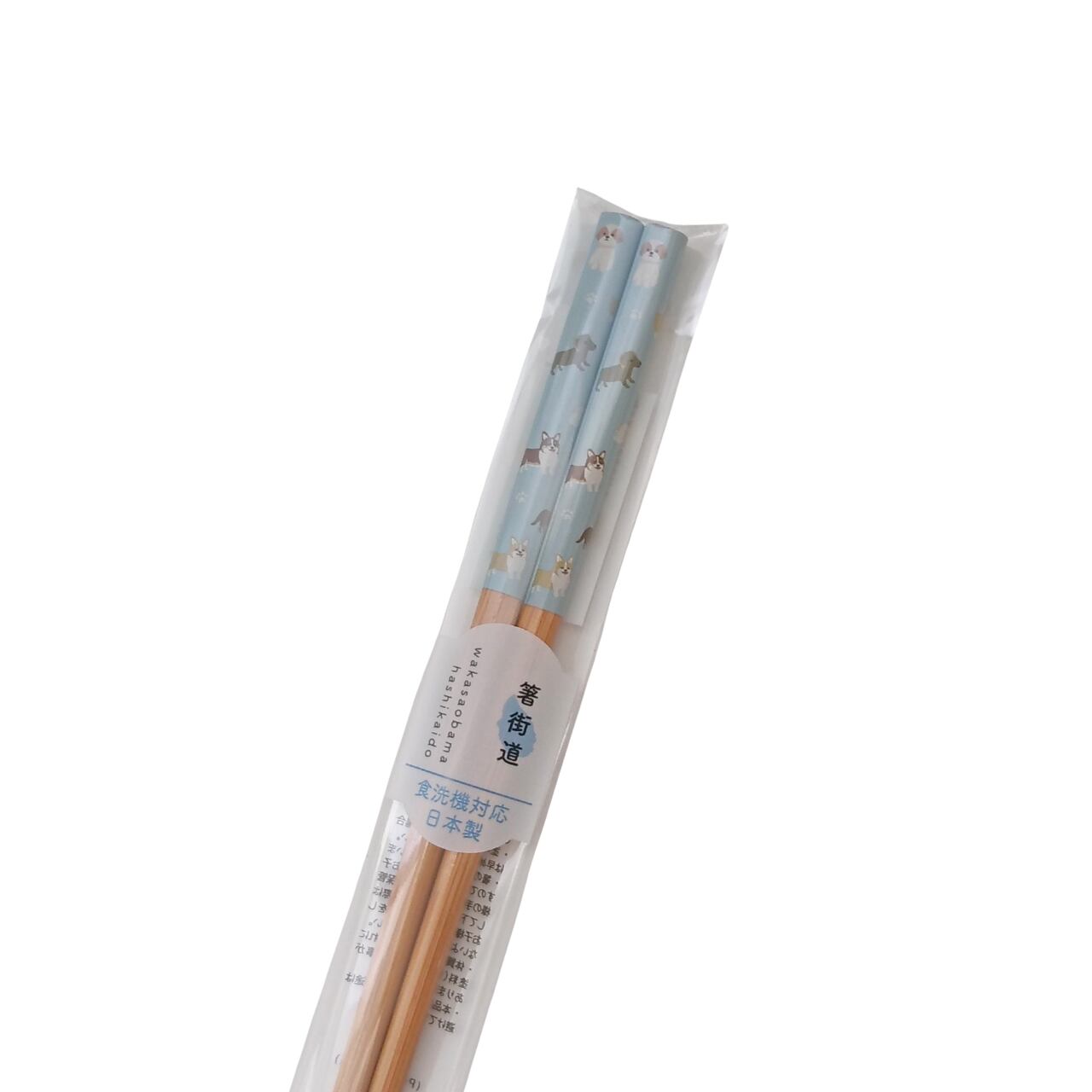 ダックスフンド・コーギー・シーズーなどのさまざまな犬の柄がかわいらしいお箸です。 食洗機対応のため、手間いらずでお手入れも簡単。 全5色からお好きな色を選んで、あなたの食卓を彩りましょう。 【サイズ・容量】 22.5cm 【素材・成分】 天然材(竹) 塗:ウレタン 【生産地】 日本